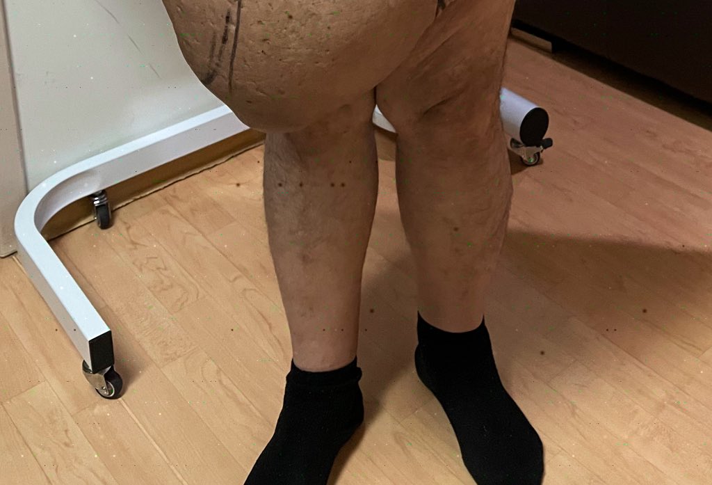 • واخذ الفتق في العملية بالكبر حتى اصبح الجلد و البطن يتدلى الى "الركب"