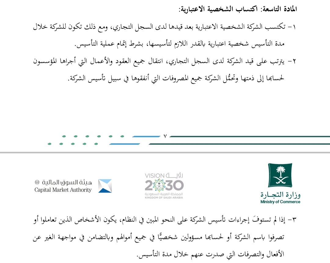 نصت المادة ٩ (اكتساب الشخصية الاعتبارية) من #نظام_الشركات_الجديد في الفقرة (١):
