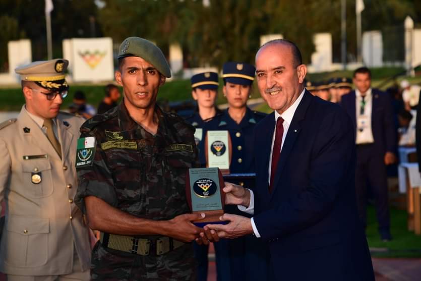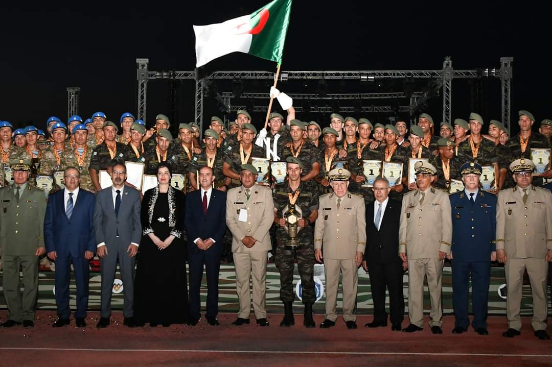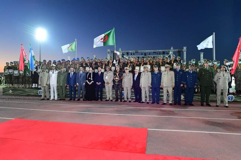 ولا يفوتني أن أنقل إليكم أنتم الفائزون، فرديا وجماعيا، بالميداليات والكؤوس، في مختلف التخصصات، التهاني الحارة للسيد رئيس الجمهورية، القائد الأعلى للقوات المسلحة، وزير الدفاع الوطني، الذي كان يتابع يوميا فعاليات هذا الحدث الرياضي الهام، كما أتقدم بدوري لجميع المتوجين