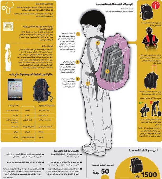 🚩بمعنى الا يزيد وزن #الحقيبة_المدرسية بمحتوياتها على 15%
