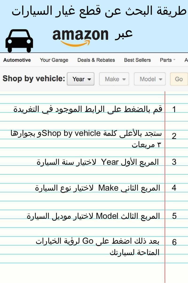 موقع أمازون افضل مواقع شراء قطع غيار السيارات اون لاين، حيث يقدم العديد من قطع غيار السيارات الامريكية والكورية وغيرها من الصورة اعرف كيف تختار سيارتك بالنوع والموديل وسنة الصنع