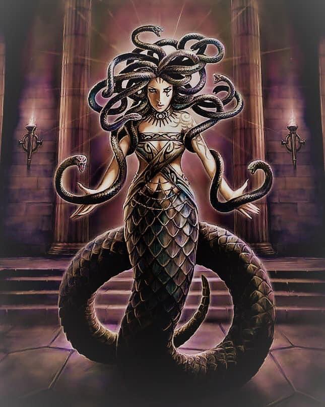 حملت (ميدوسا) طفلين من (بوسيدون) و لكنها لم تستطع إنجابهم بسبب اللعنة😞