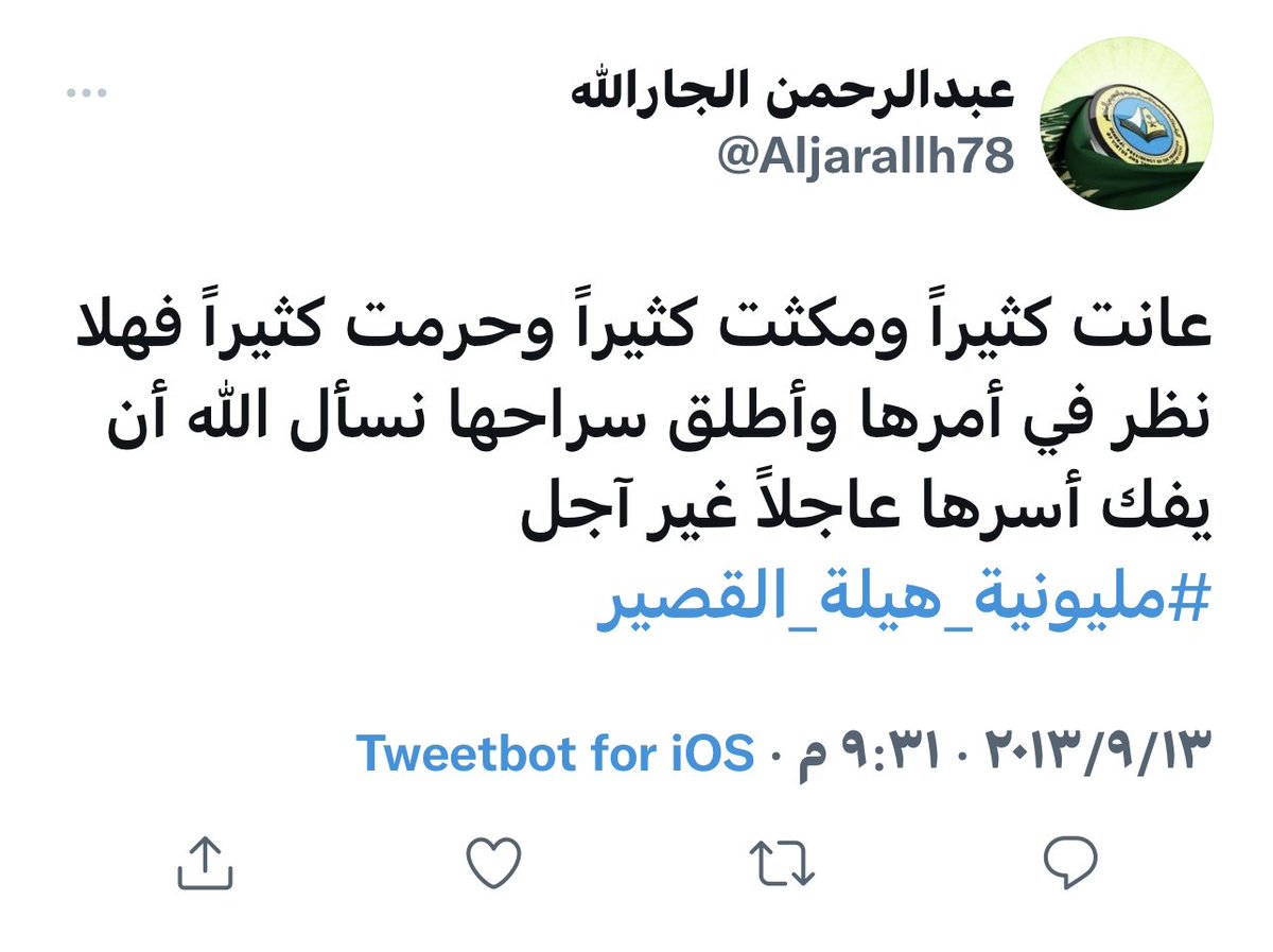 وجدت في حساب عبدالرحمن الجارالله العضيب معلم المرحلة الثانوية وإمام وخطيب جامع بن عقيل بالزلفي تغريدة عجيبة غريبة فيها دفاع عن الحرورية هيلة القصير