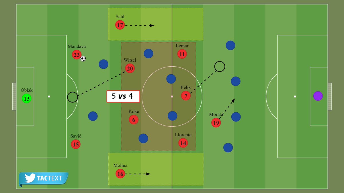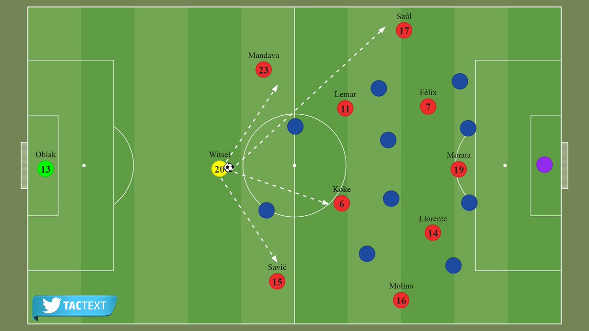 في الجولة التحضيرية ومن ثم مع بداية الموسم بمباراتي خيتافي وفياريال؛ كان واضحاً أن سيميوني سيعتمد على صفقته الجديدة أكسل فيتسل بطريقةٍ مختلفةٍ نوعاً ما؛ بتواجده كمدافع أوسط في رسم 2-5-3