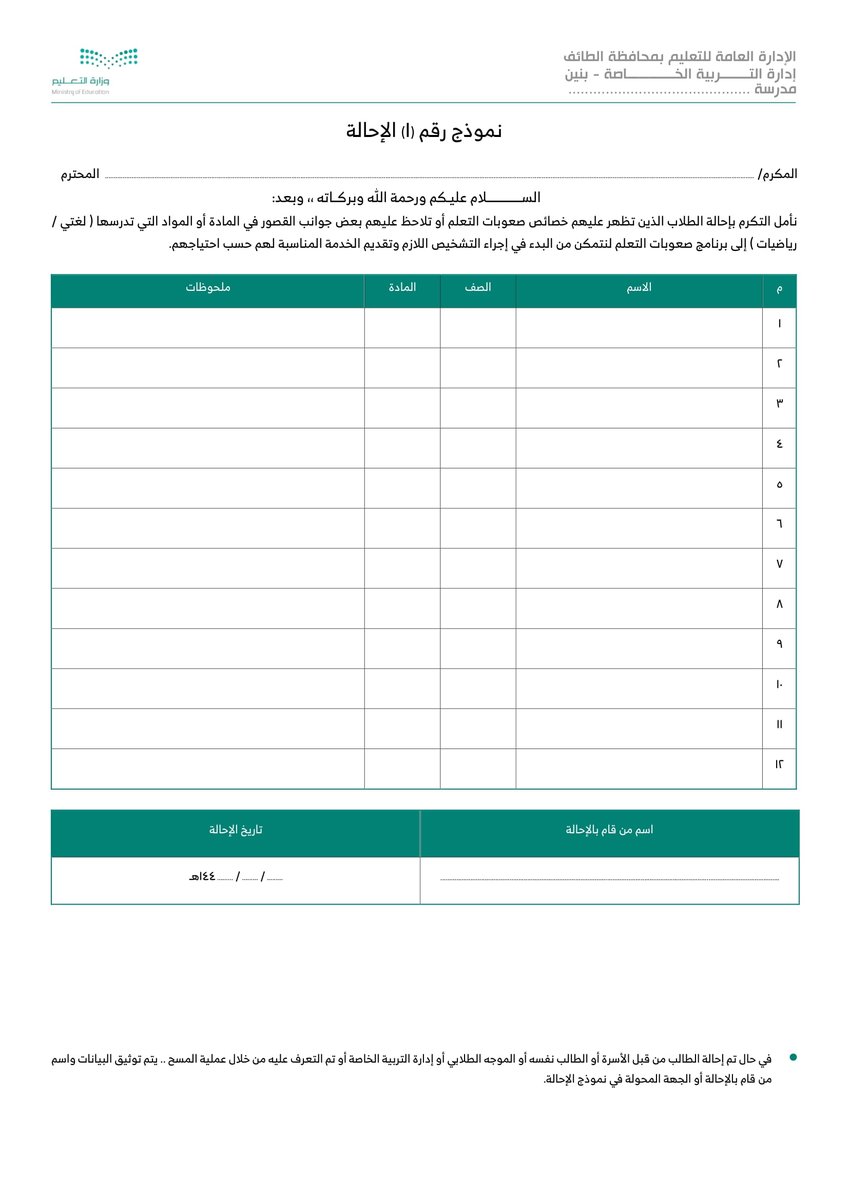 نموذج 6 تحويل طالب للقياس والتشخيص :