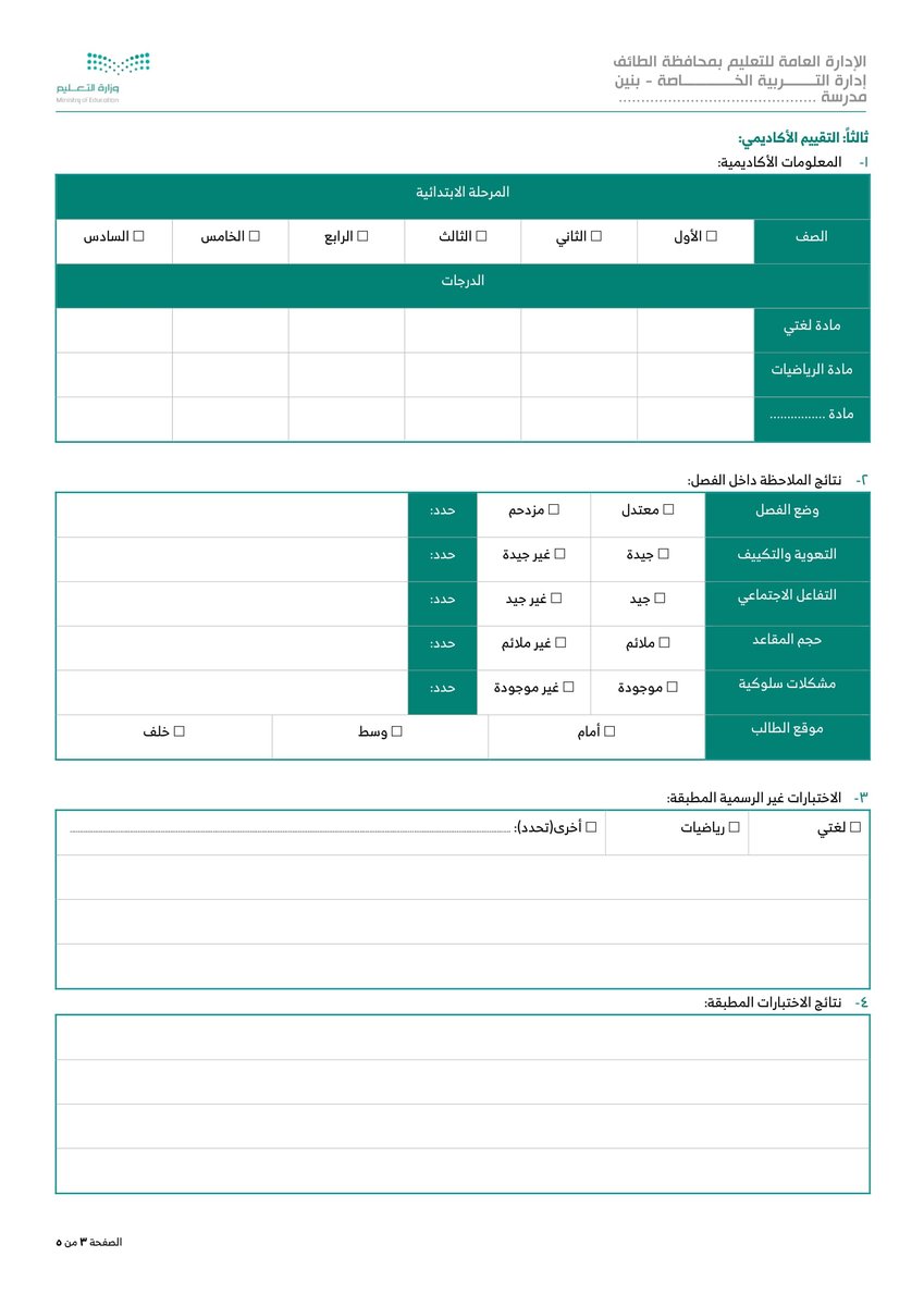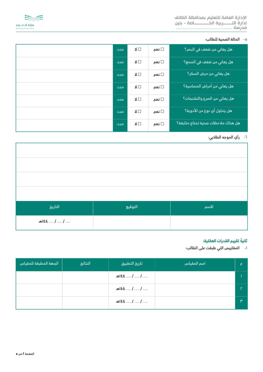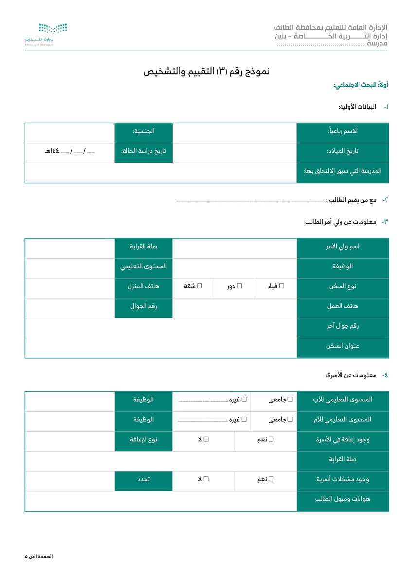 نموذج 7 طلب القياس والتشخيص من ولي الأمر :