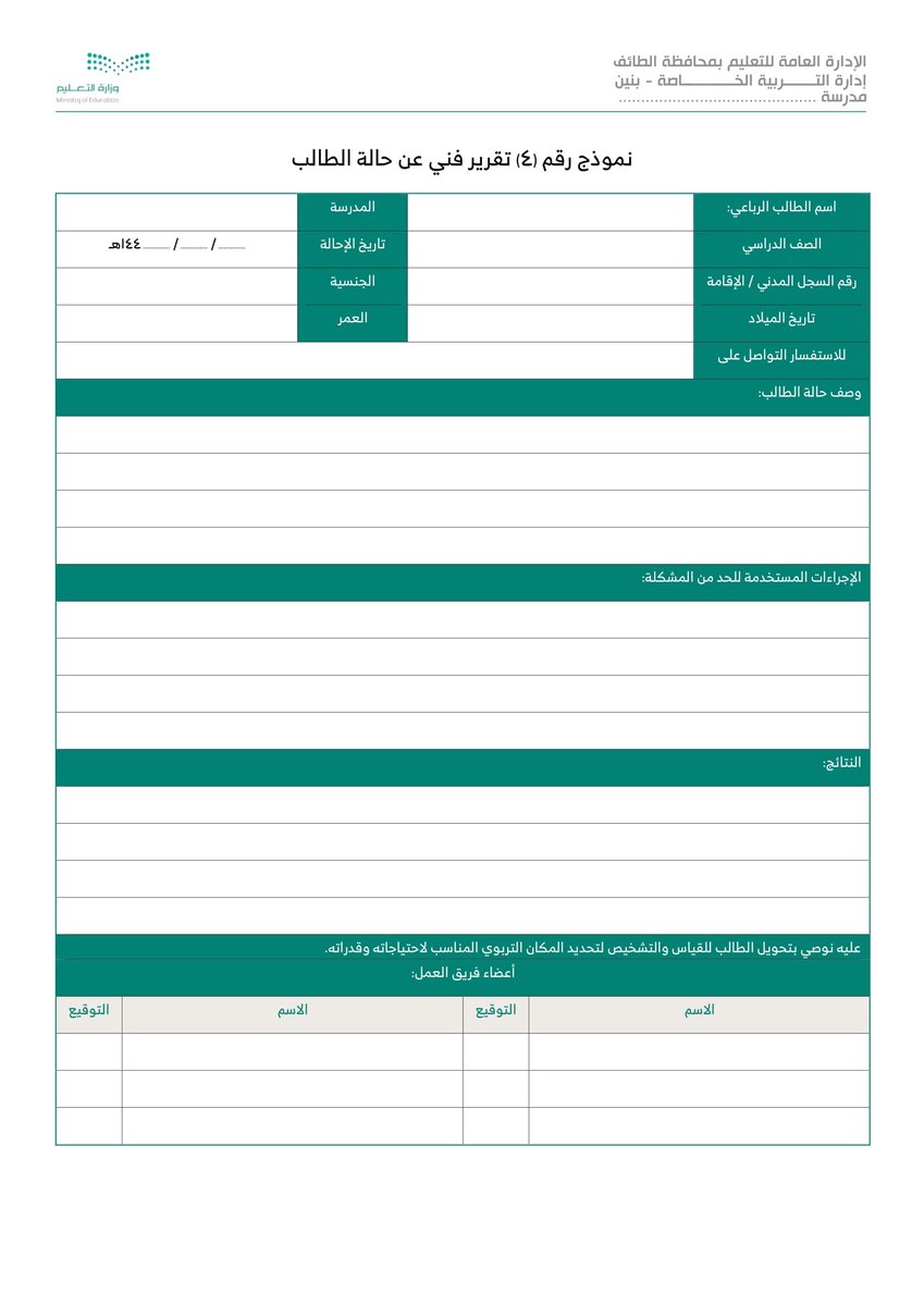 نموذج نموذج 4 تقرير فني عن حالة الطالب :