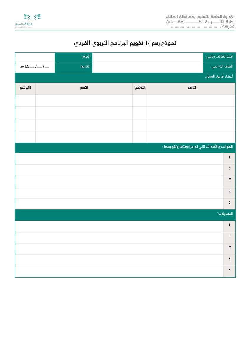 نموذج 10 تقويم البرنامج التربوي الفردي :