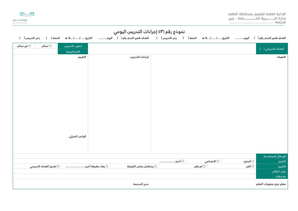 نموذج 13 إجراءات التدريس اليومي :