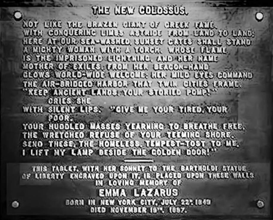 Nel 1903 fu installata una lapide all’interno del piedistallo della Statua della Libertà.