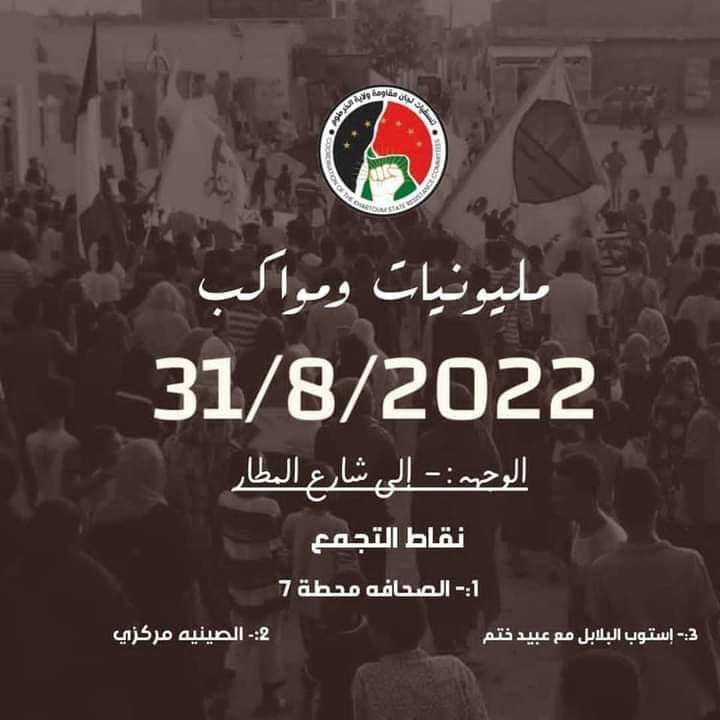 إستكمالاً لنضالات شعبنا الباسلة نحو الحريّة و الإنعتاق من ظلام الديكتاتورية البغيضة، سنخرج في مواكب الواحد و الثلاثون من أغسطس في ملحمة جماهيرية جديدة دعماً للمفقودين_الإرهاب