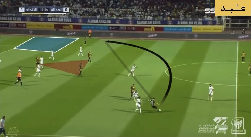 • من الأمور التي إنتهجها فريق #الاتحاد ضد العدالة والتي عمل عليها نونو سانتو ، هو اللعب على المرتدات والمساحات في ( الشوط الثاني تحديدًا ) .. فكيف عمل عليها الفريق ؟