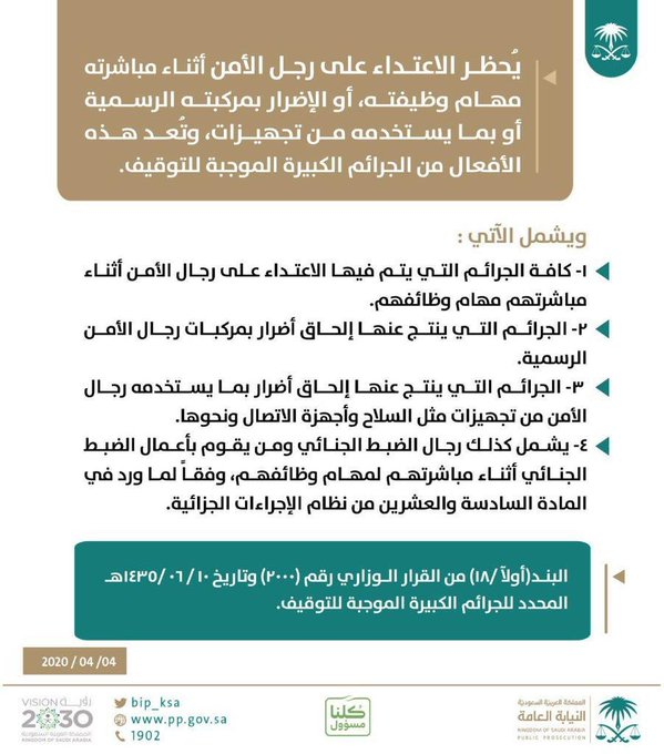 ١. حين يصدر أمر من الجهات المختصة بالإيقاف من بدهيات مهام رجل الأمن القبض على المتهم، والقبض إجراء مُقيّدٌ للحرية، فلا ينظر معه لإرادة المتهم أو جنسه أو مشاعره تجاه مبدأ الإجراء، وليس لصاحبه إلا الانصياع لأمر القبض الصادر من الجهات الرسمية، فإذا حاول المقاومة، ولم يرضخ،