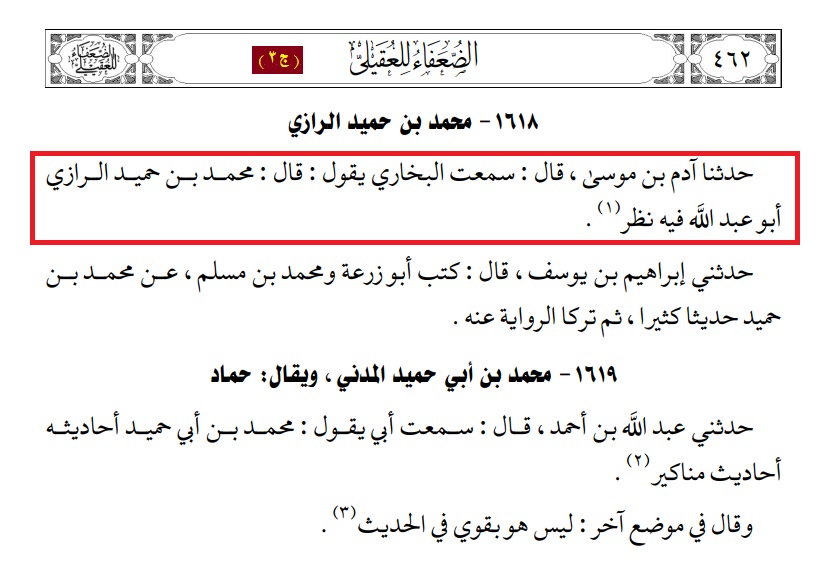 7/ وقول الترمذي المذكور آنفًا يدل على أن نسخته من التاريخ لم يكن فيها تضعيف محمد بن حميد الرازي، وهذا معناه أن تلك الإبرازة التي كانت بين يديه أقدم من إبرازة ابن سهل، وهذا يفسر لنا سبب التعارض في بعض أحكام البخاري بين إثباتِ شيءٍ ونفيِه والعكس، والأمثلة متوافرة على ذلك.