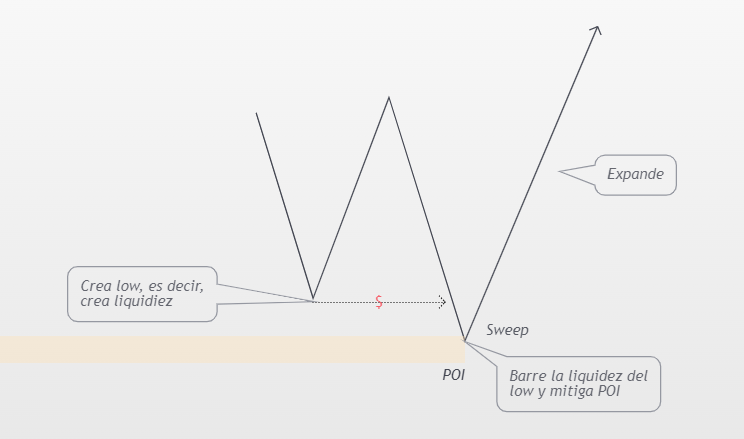 Es decir, venimos de tendencia bajista, crea LL (Lower Low) y posteriormente un LH (Lower High), encuentra oferta y crea de nuevo otro LL.