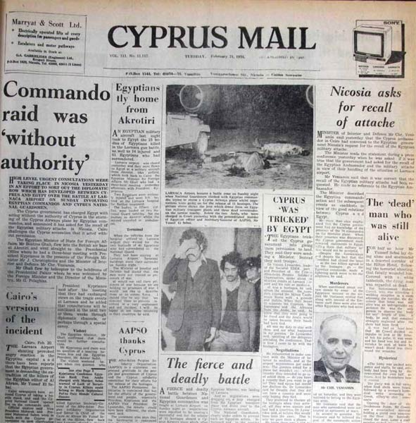 الرئىس القبرصي قام بتقدير طلب أنور السادات واتجه بنفسه لمطار لارانكا الدولي لمتابعة عملية تحرير الرهائن.