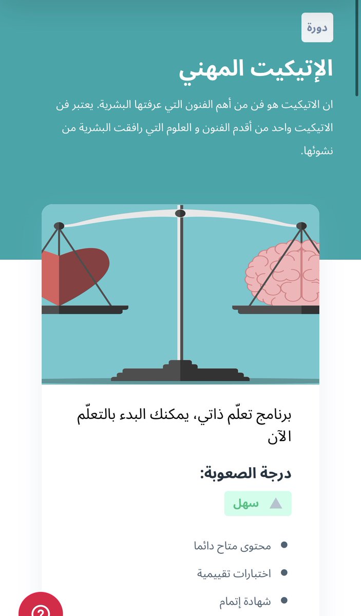 💡يقدم موقع إدراك دورة مجانية باللغة العربية عن بعد لمبادئ الإتيكيت المهني.