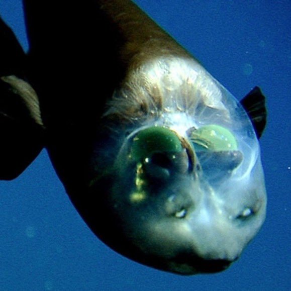 سمكة ذات الرأس الشفاف قد يبدو أنك لأول مرة تشاهدها في حياتك، تتواجد في محيط الهادئ كانت على عمق يتراوح ما بين 600 إلى 800 متر