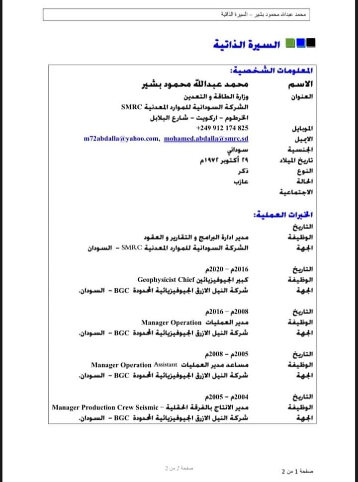 إنضم في العام ٢٠٢٠ للعمل كموظف في الشركة السودانية للموارد المعدنية