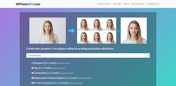 بعد اختيار بلدك، سيتم تحضير صورة جواز السفر بشكل تلقائي ووفق قوانين البلد،