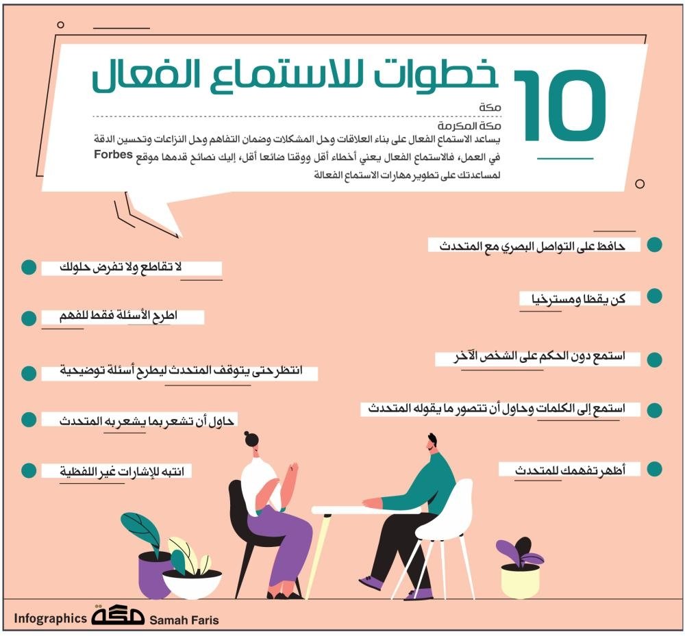 1- الاستماع يتطلب أن يكون ذهنك حاضرا مع المتحدث، وأن تخصص له حواسك وتركيزك