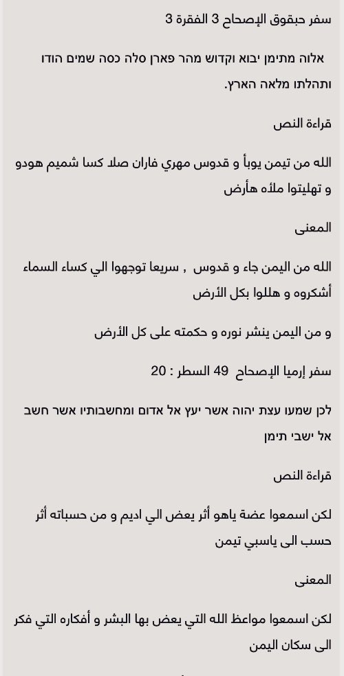 تطابق بين المفردات في لهجه اهل جنوب الجزيره ونصوص التوارة وعلاقة العبرانية بخط المسند و مهد التوارة. ما يؤكد أن العبرية هي لهجه جنوبيه عربيه أشتقت حروفها من الخط المسند و كتبت بلهجة يمنية بحتة.