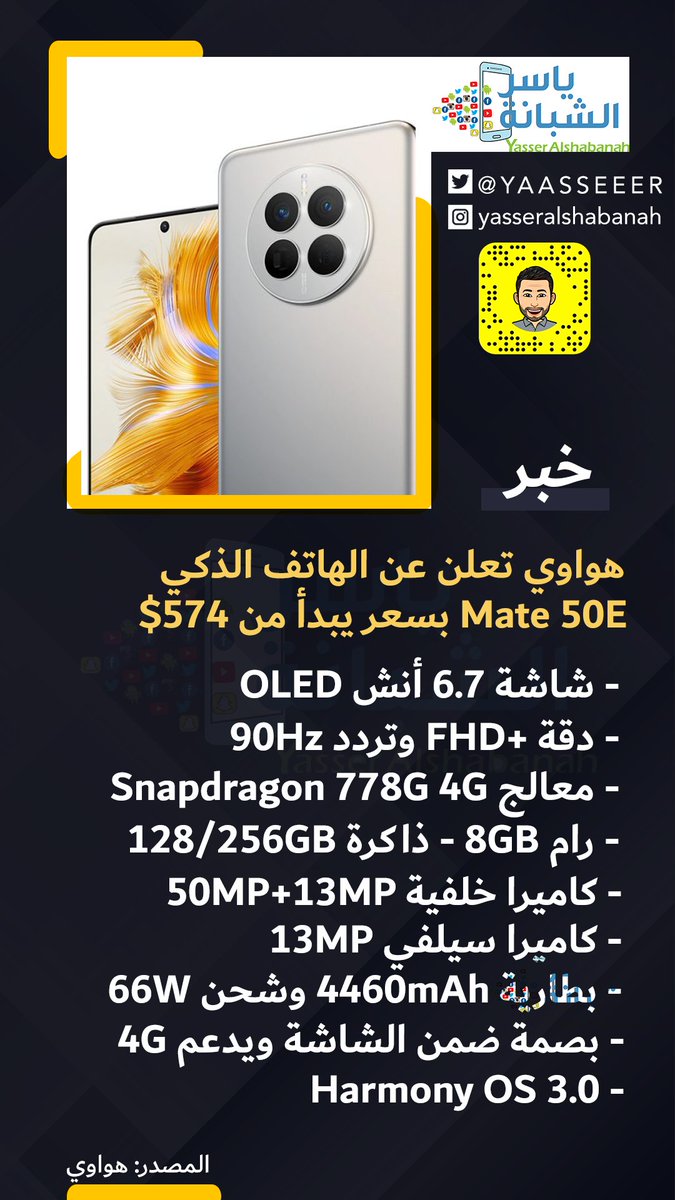 مواصفات هاتف #HuaweiMate50SE ⤵️