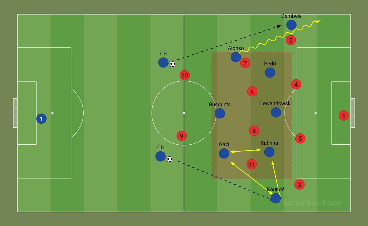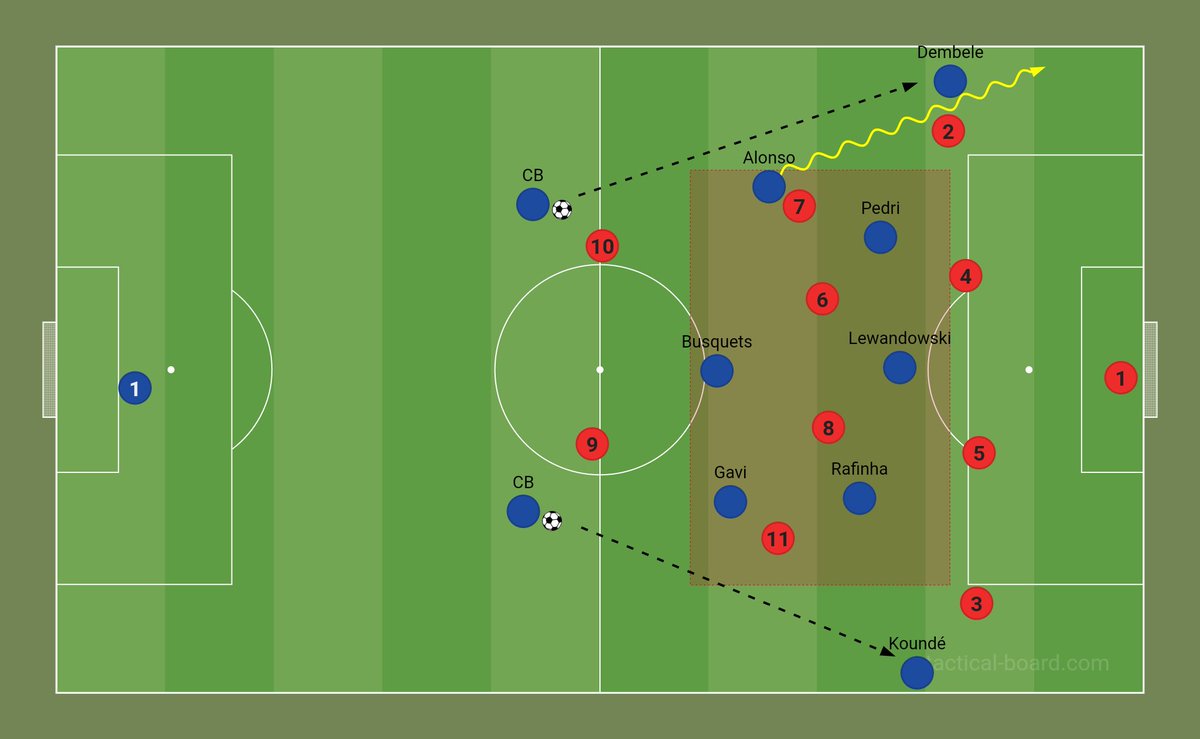 🔸 يخلق حالة ( واحد ضد واحد ) لديمبيلي على الطرف الأيسر و هو الهدف الأساسي لبرشلونة
