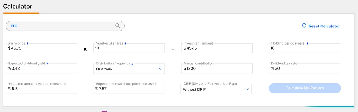 راح نحاول نطبق المثال من استخدام DRIP مع سهم شركة فايزر $PFE