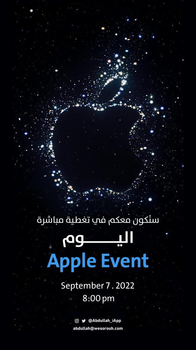 ▪️سنكون معكم في تغطية مباشرة لأهم أحداث مؤتمر #AppleEvent اليوم في تمام الساعة 8 مساءً ,