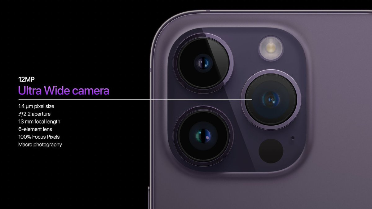 iPhone 14 pro الكاميرا بدقة 48 ميجابكسل والتصوير الليلي أفضل بمرتين من السابق ، والحساس جداً عالي .