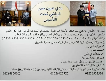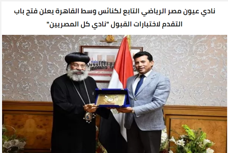 نادي #عيون_مصر التابع لكنائس وسط القاهرة يعلن فتح باب التقدم لاختبارات القبول "نادي كل المصريين"