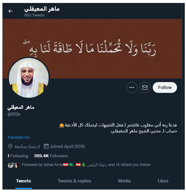 قبل الحديث عن الحساب المنتحل لإسم ماهر المعيقلي ( كمثال )