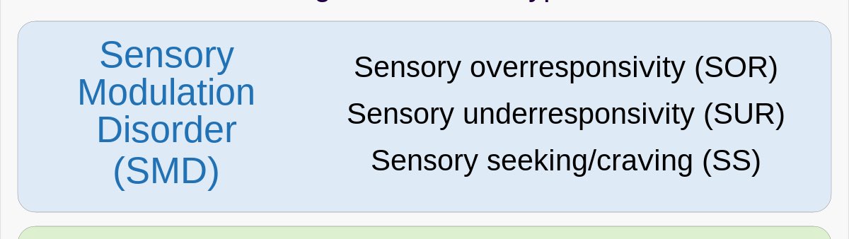 النوع الاخير من الSPD هو خلل التمييز الحسي sensory discrimination disorder فيصعب على الشخص استيعاب وادراك المدخلات الحسية او يحتاج وقت اطول واشهر مثال هو بعض انواع صعوبات التعلم لدى الطلاب فقد يحتاجون تكرار للمعلومة اكثر او شرحها بعدة طرق حتى يكونوا قادرين على استيعابها وفهمها