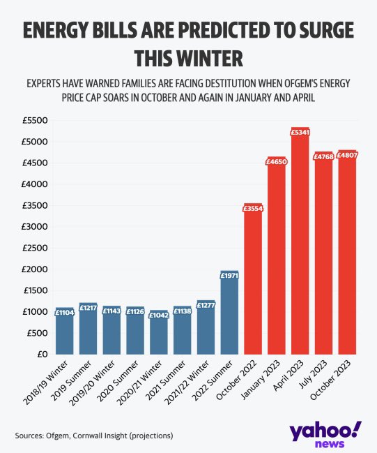اليوم أعلنت رئيسة الوزراء أن الحد الأعلى لفاتورة الطاقة (الكهرباء والغاز) رح تكون 2,500£ سنوياً