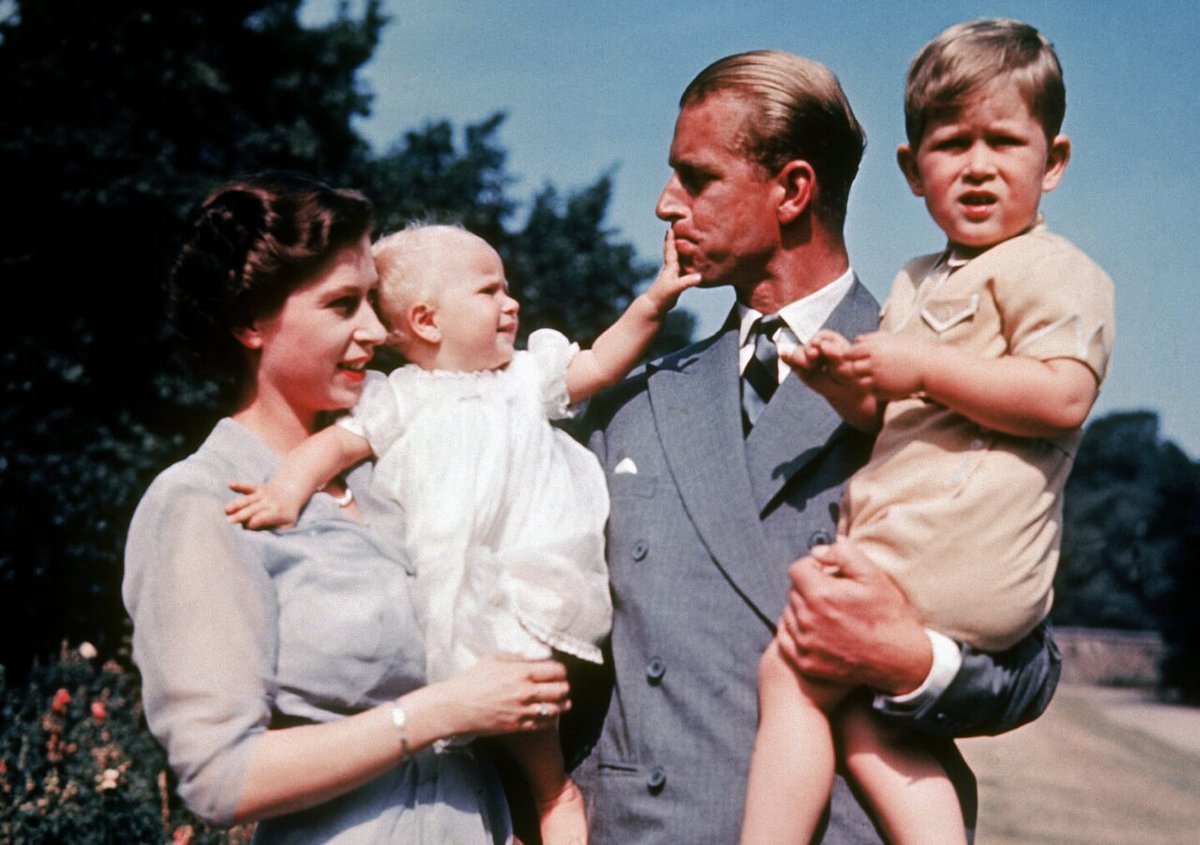 Princess Elizabeth and the Duke of Edinburgh with Prince Charles and Princess Anne in 1951 – this is the first colour photograph of Princess Anne