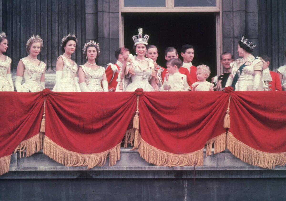 2 June 1953: the newly crowned Queen Elizabeth II waves to the crowds
