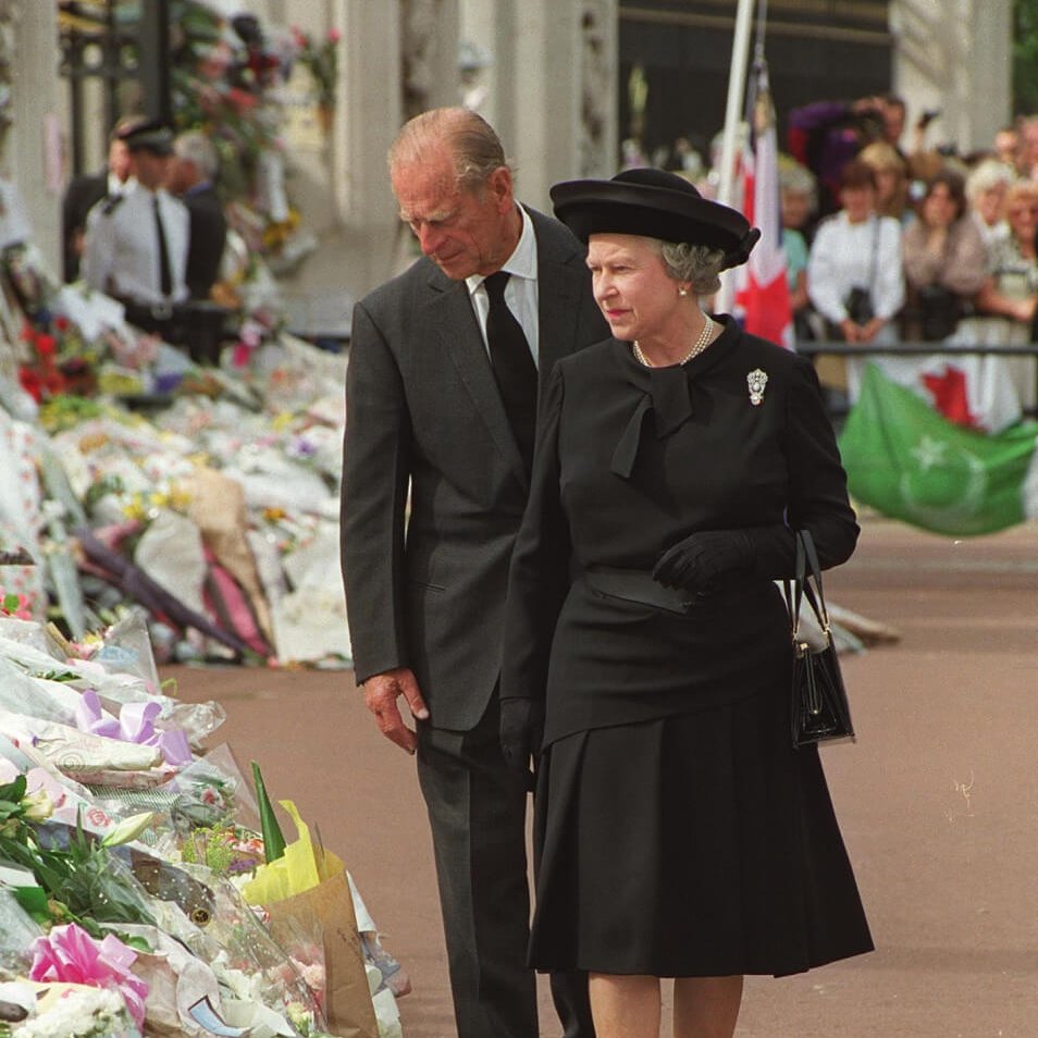 September 1997: viewing tributes to Diana, Princess of Wales outside Buckingham Palace