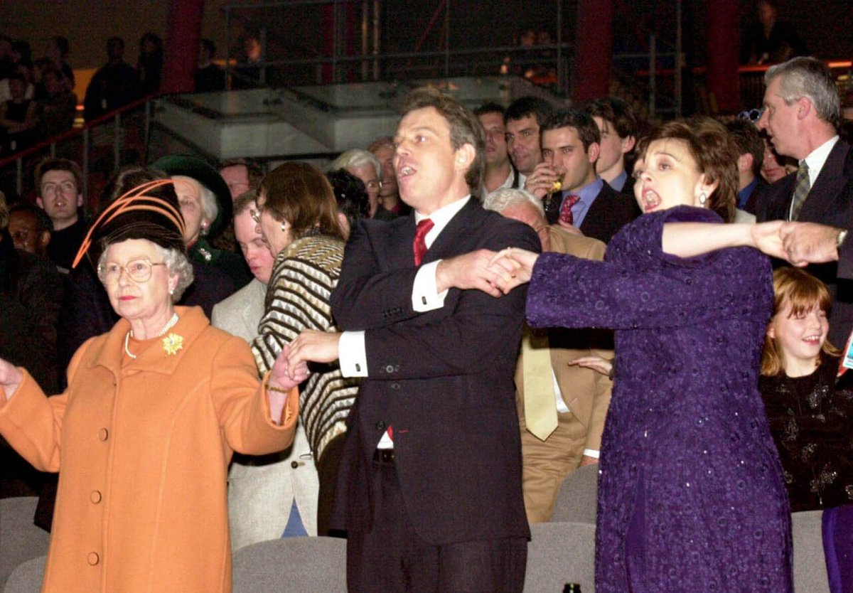 Singing Auld Lang Syne with Tony Blair during Millennium NYE celebrations, 1999