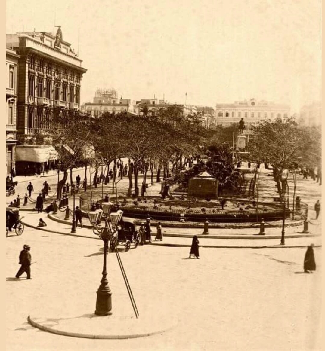وأحاطت به المبانى السكنية المستطيلة بإرتفاع ثلاثة أو أربعة طوابق وتم طلاؤها باللونين الأصفر والوردى وارتبطت الحركة التجارية النشطة بثروات اليونانيين الجديدة وبأصدقاء الوالي محمد علي وشركائه ووقف قصر«توسيتزا»القنصل اليوناني الذى صممه«مانشيني»على رأس الجهة الشرقية للميدان 👇7