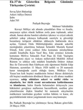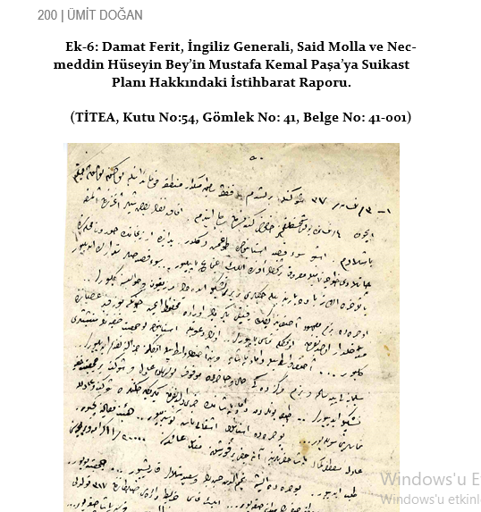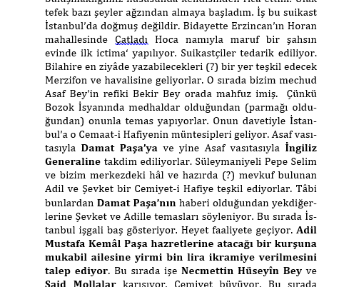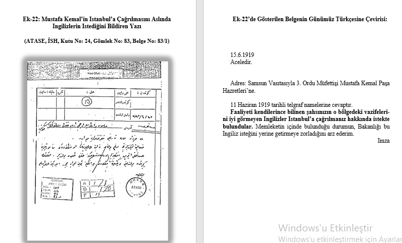 16- Damat Ferit Hükümeti’nin beyannamesini lütfen okuyun. Açıkça yazıyor. Bizim en büyük düşmanımız milli teşkilat denilen isyancılardır diye. İhanetin belgesidir bu. İngiliz, Yunan, Fransız demiyor dikkat edin. En büyük düşman, esas düşmana karşı savaşan Atatürk ve arkadaşları.