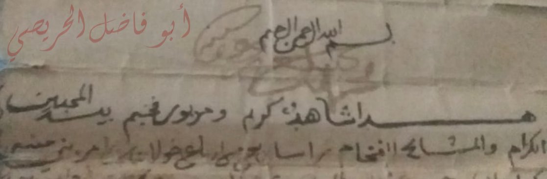 ((هذا شاهد كريم ومزبور فخيم بين المحبين الكرام والمشائخ الفخام راسا ربع من أرباع خولان بن عامر بني منبه وكبرائهم))