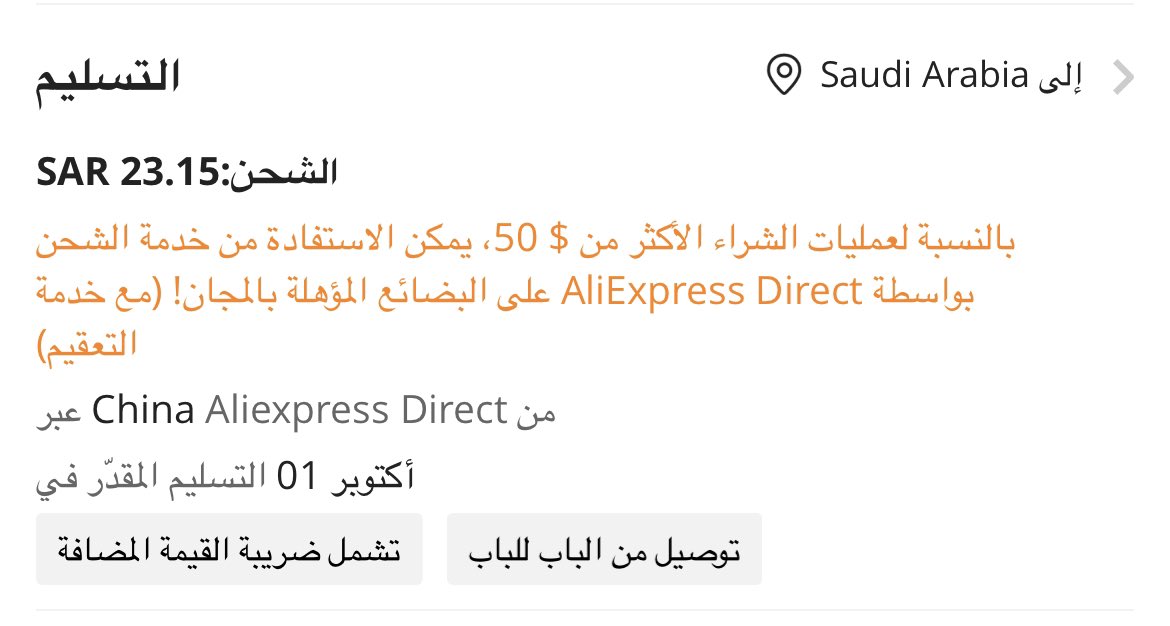 علي اكسبرس يوفر شحن عبر الدايركت والشحن يكون خلال اسبوعين وكحد اقصى 20 يوم،