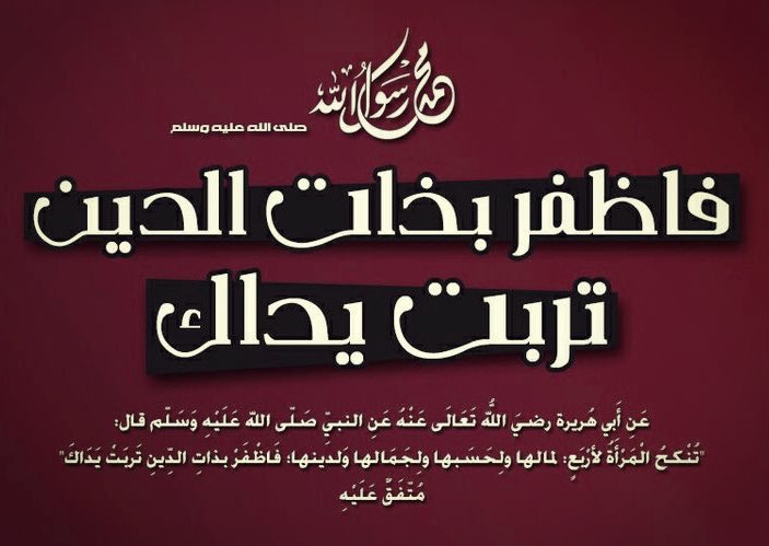 (تنكح المرأة لاربع، لمالها وجمالها ولحسبها ولدينها، فاظفر بذات الدين تربت يداك)
