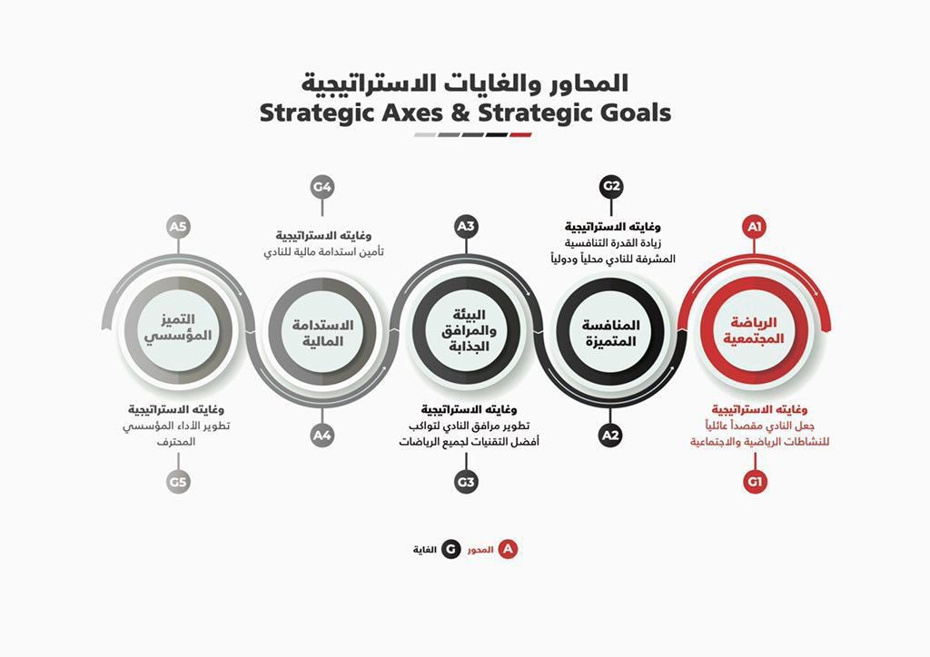 حدد النادي مساراته الاستراتيجية في خمس محاور، ووضع غاية استراتيجية واضحة لكل محور ..