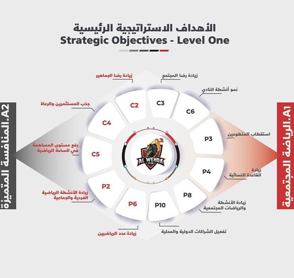 بعد ذلك قام النادي بتحديد أصحاب المصلحة المرتبطين باستراتيجيته، وتحديد الأهداف الاستراتيجية التي تتعلق بهم، ووضع ذلك في خارطته الاستراتيجية ..