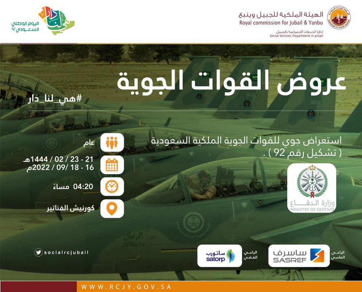 ستكون سماء مدينة #الجبيل_الصناعية على موعد مع عروض طيران القوات الجوية الملكية السعودية ✈️✈️ .