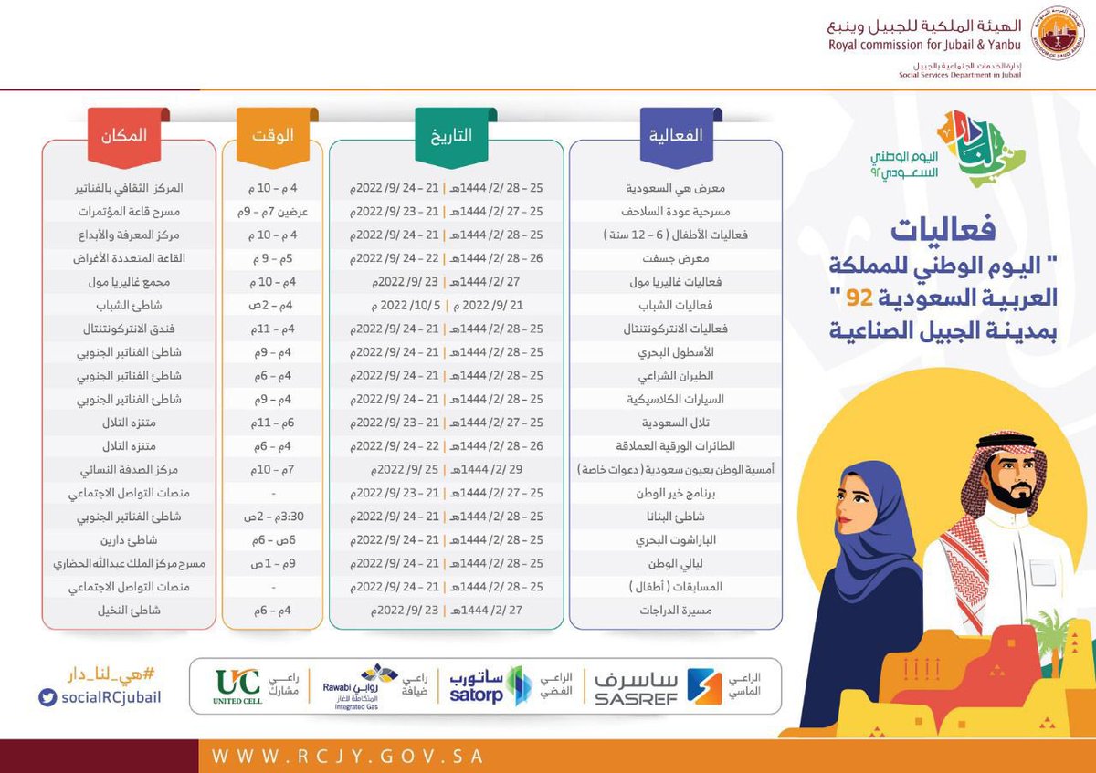 مدينة #الجبيل_الصناعية تحتفل بـ #اليوم_الوطني بـ (19) فعالية منوعة 🇸🇦