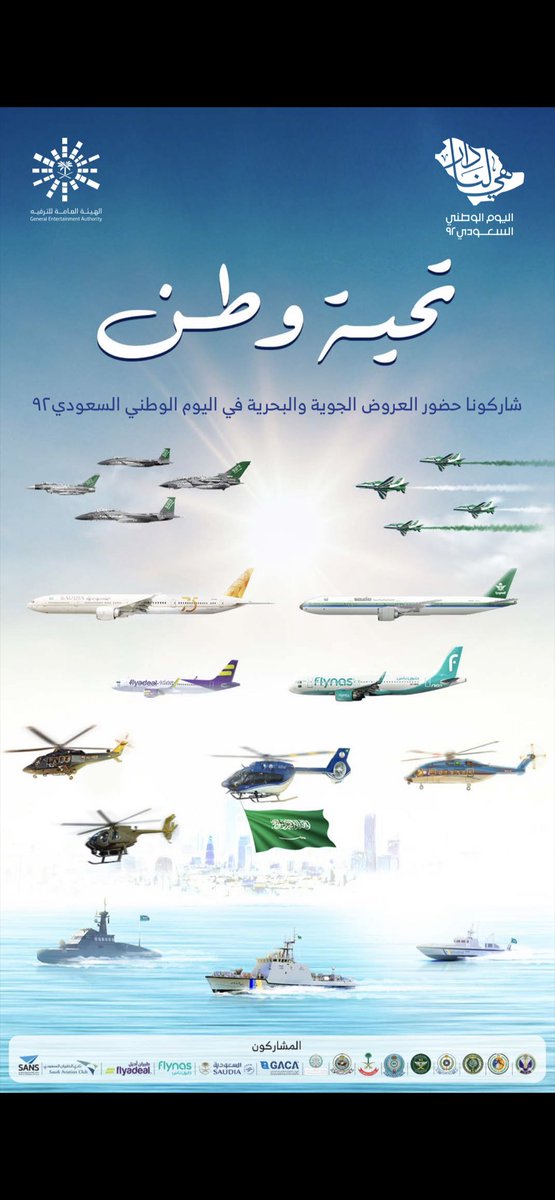 عروض جوية وبحرية في مختلف مناطق المملكة بمناسبة #اليوم_الوطني .