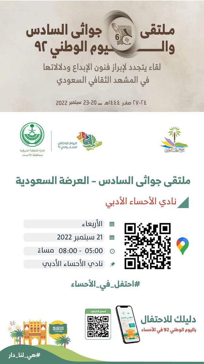 احتفالًا بـ #اليوم_الوطني_السعودي_92 تدعوكم #غرفة_الأحساء للحضور والمشاركة في فعالياتها المتنوعة التي تنظمها في #العثيم_مول يوم الجمعة ٢٣ سبتمبر.